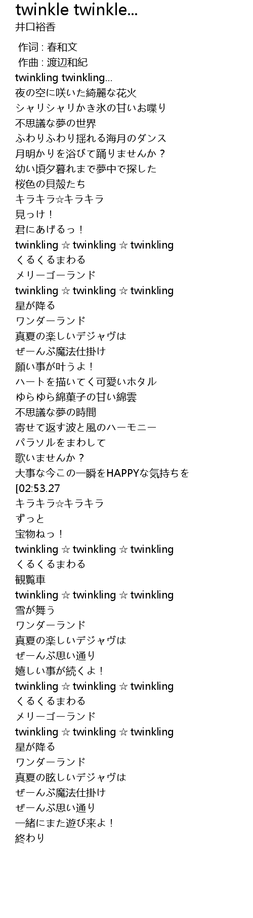 | [03:05.51] | twinkling ☆ twinkling ☆ twinkling |