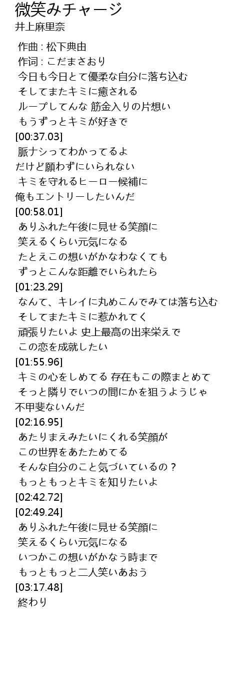| [00:58.32] | ありふれた午後に見せる笑顔に |