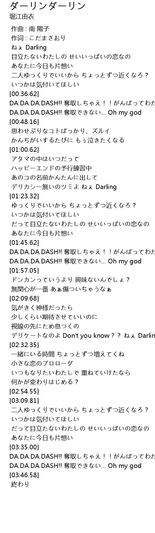 | [00:43.77] | DA. DA. DA. DASH!! duó qǔ Oh my god |
