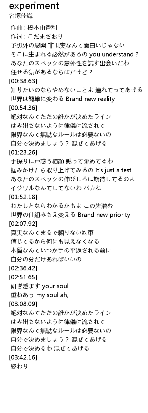 | [01:59.24] | 世界の仕組みさえ変える Brand new priority |