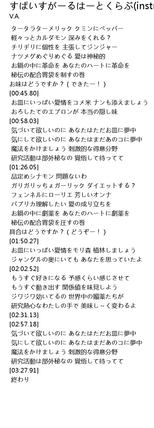 | [02:59.18] | 気づいて欲しいのに あなたはただお皿に夢中 |