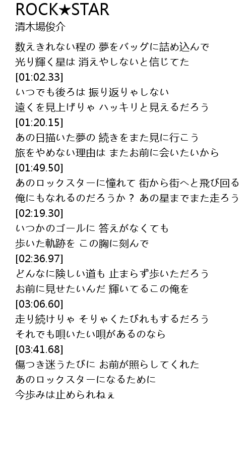| [04:00.48] | あのロックスターになるために 今歩みは止められねぇ |