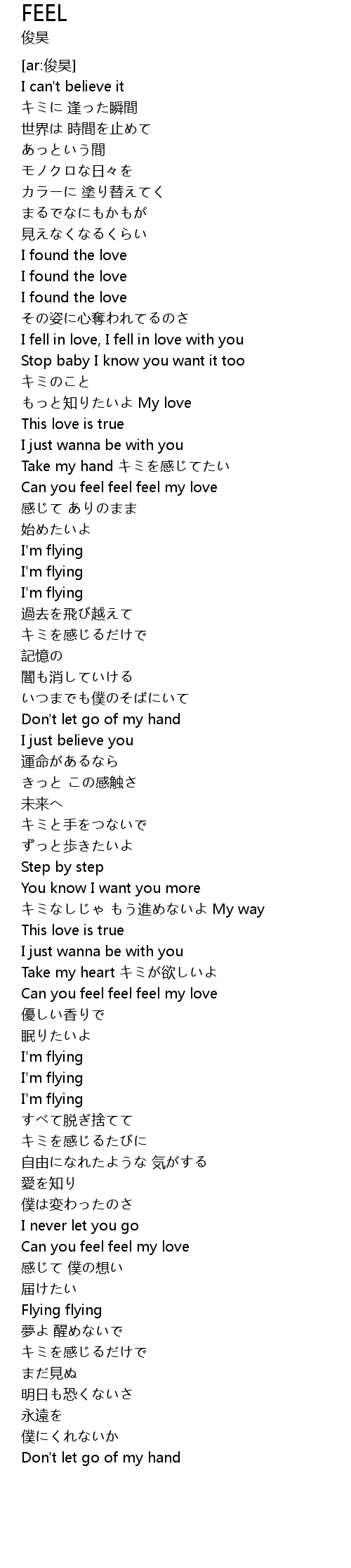 | [02:03.48] | Can you feel feel feel my love |
