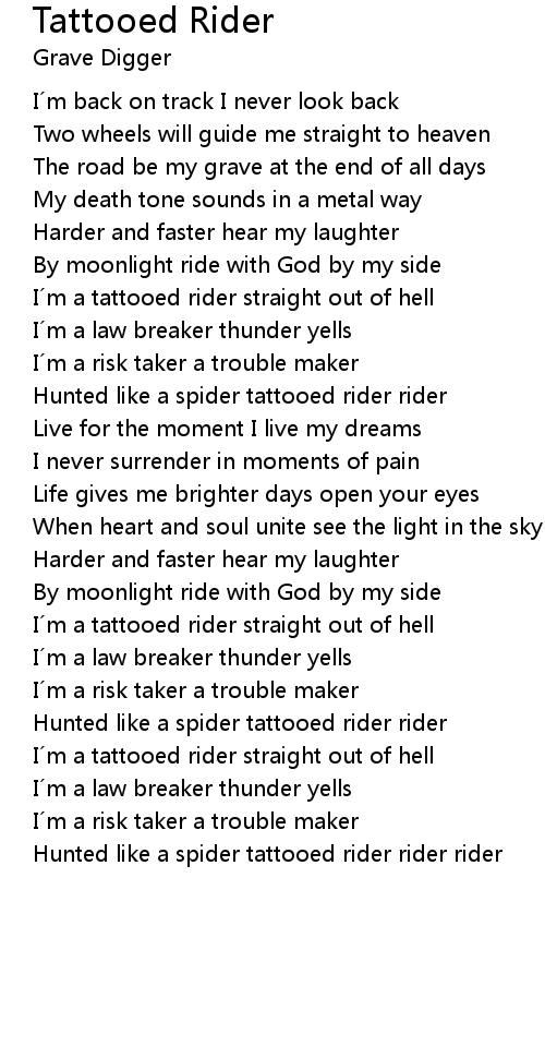 | I´m a tattooed rider straight out of hell | |