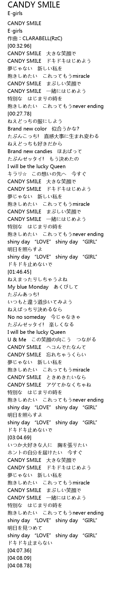 | [02:40.73] | CANDY SMILE アゲてかなくちゃね |