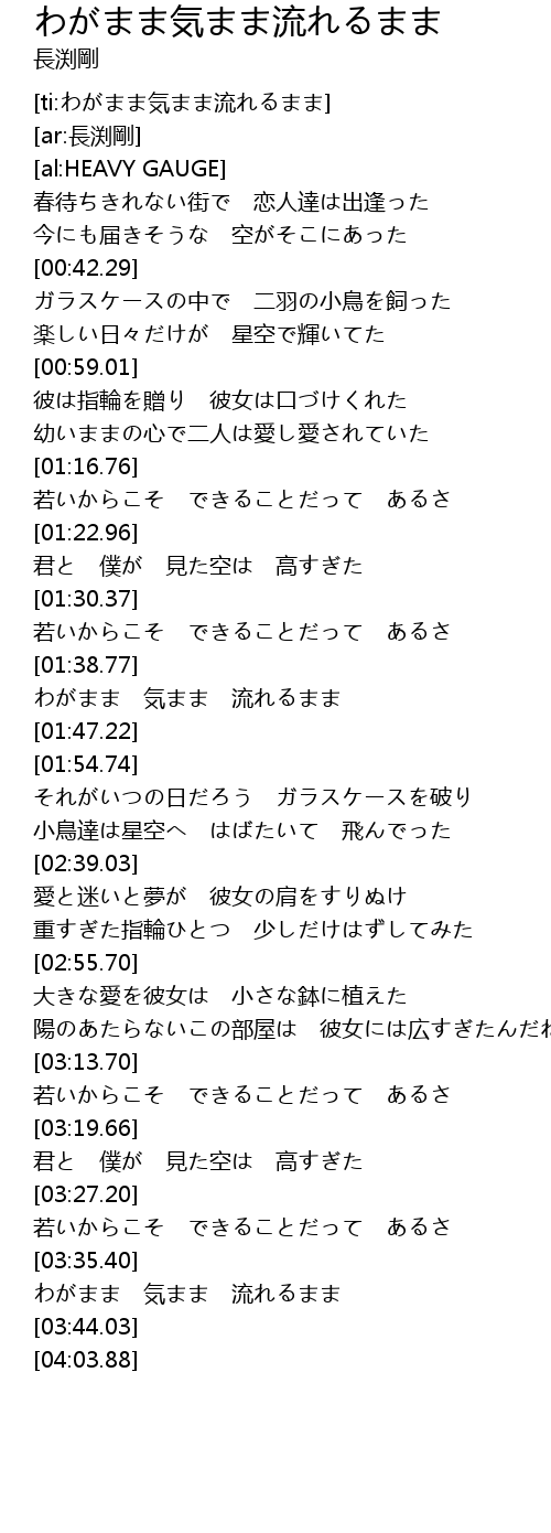 | [03:37.95] | わがまま 気まま 流れるまま |