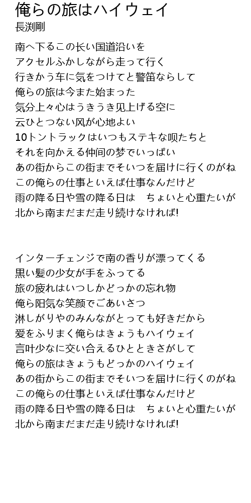 | 南へ下るこの长い国道沿いを | |