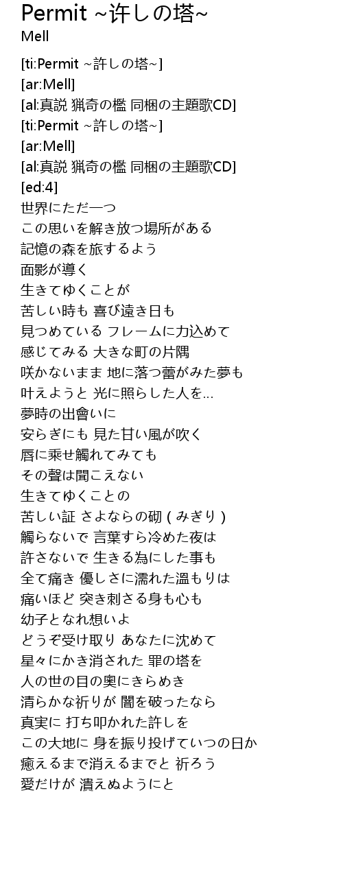 | [ti:Permit ~許しの塔~] | |