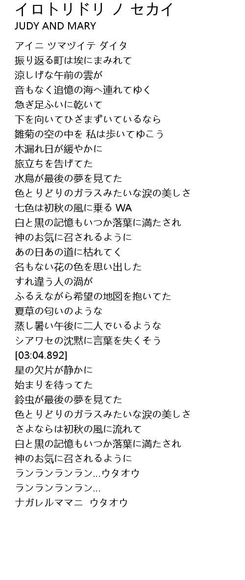 | [04:15.795] | 白と黒の記憶もいつか落葉に満たされ |