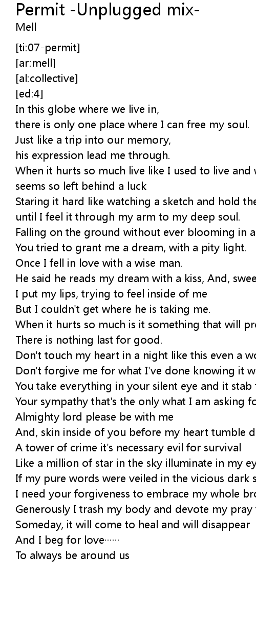 | [03:21.089] | I need your forgiveness to embrace my whole broken heart |