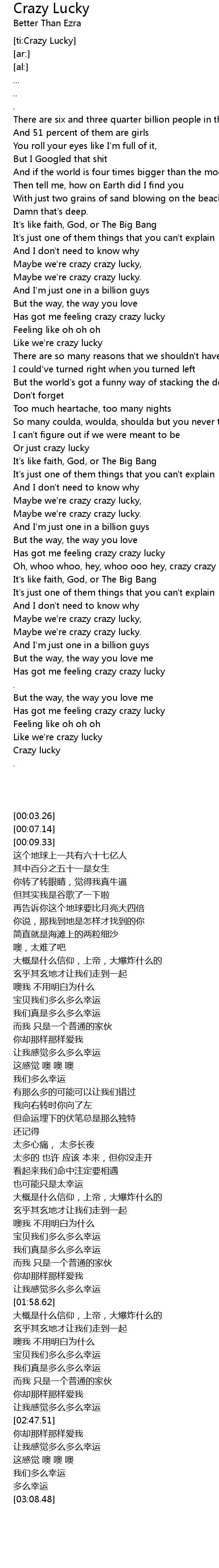 [ti:Crazy Lucky] |