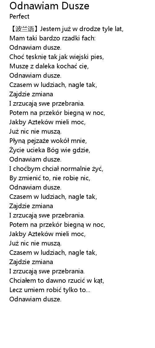 | [00:19.94] | 【波兰语】Jestem już w drodze tyle lat, |