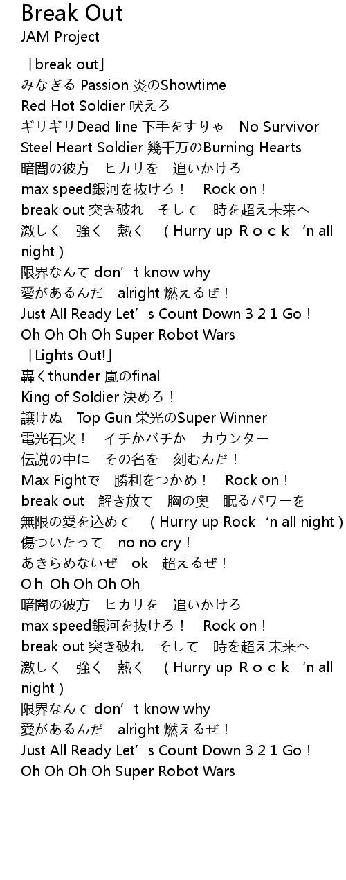 | [00:56.96] | break out 突き破れ そして 時を超え未来へ |
