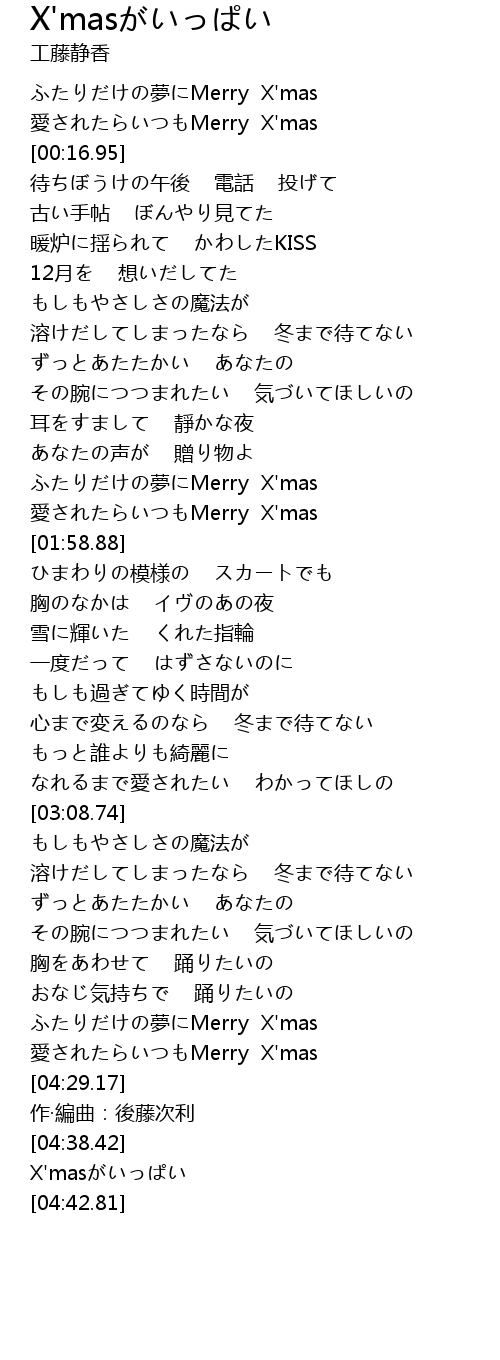 | [04:20.65] | 愛されたらいつもMerry X'mas |
