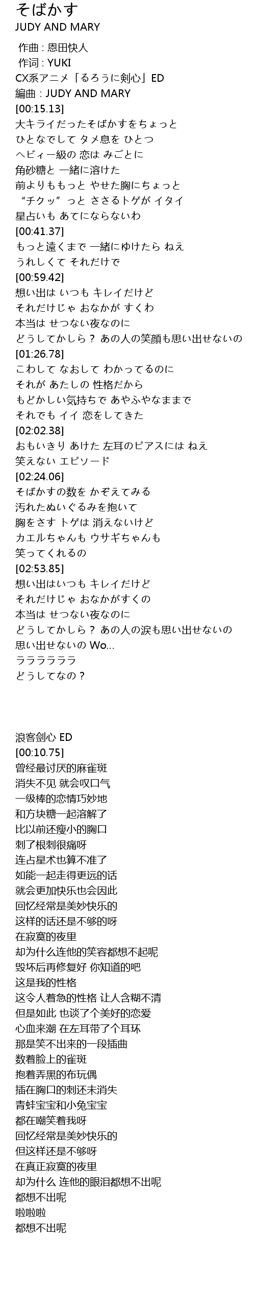 | [00:10.75] | 編曲:JUDY AND MARY |