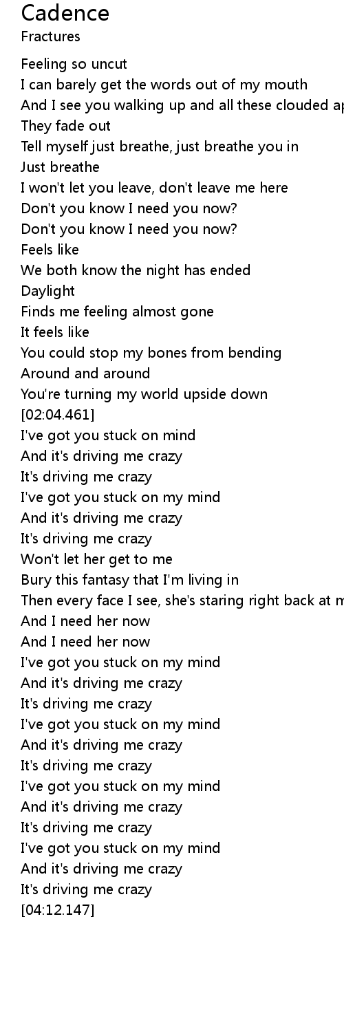 | [01:21.333] | I won't let you leave, don't leave me here |