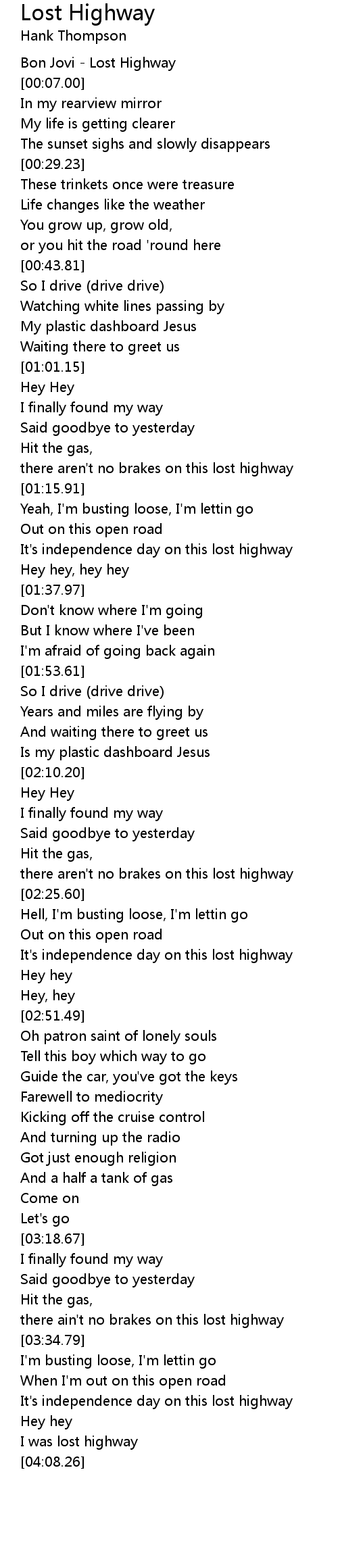 there ain't no brakes on this lost highway |