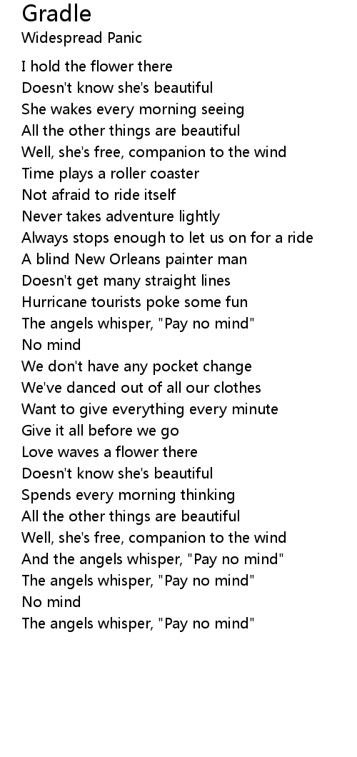 And the angels whisper, "Pay no mind" |