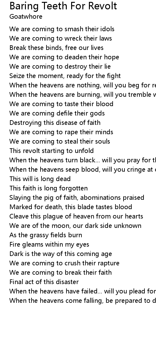 Baring Teeth For Revolt 歌词