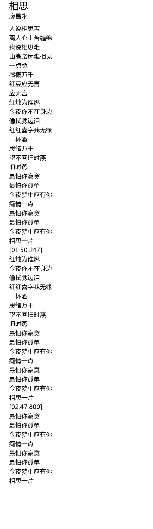 | [00:36.688] | wǒ shuō xiāng sī nán |
