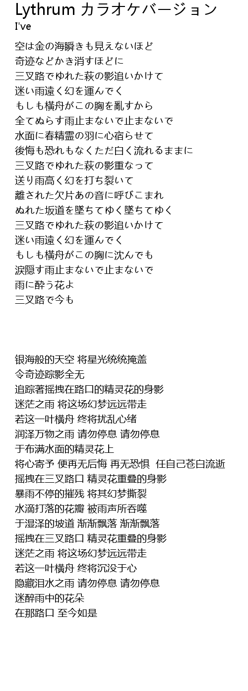 | 歌曲 | Lythrum カラオケバージョン |
