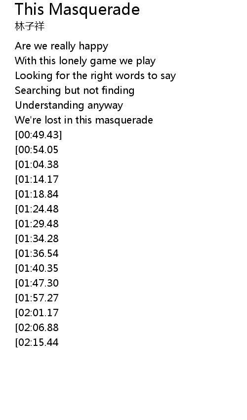 | [00:42.19] | We're lost in this masquerade |
