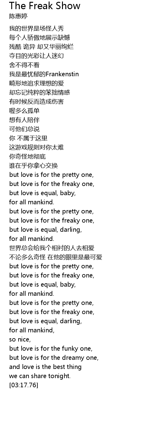 | [02:38.98] | but love is for the freaky one, |