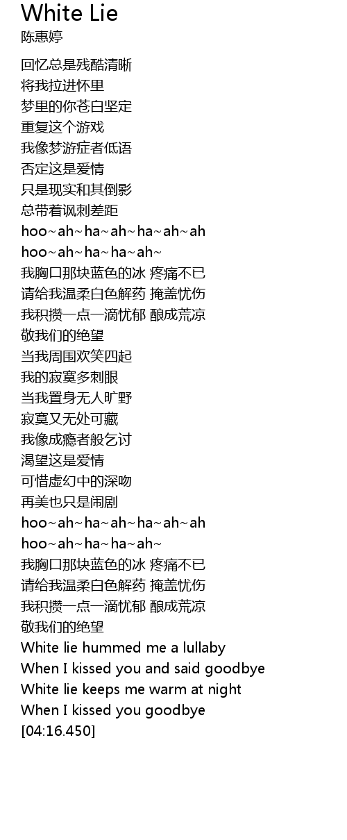 | [03:42.260] | White lie hummed me a lullaby |