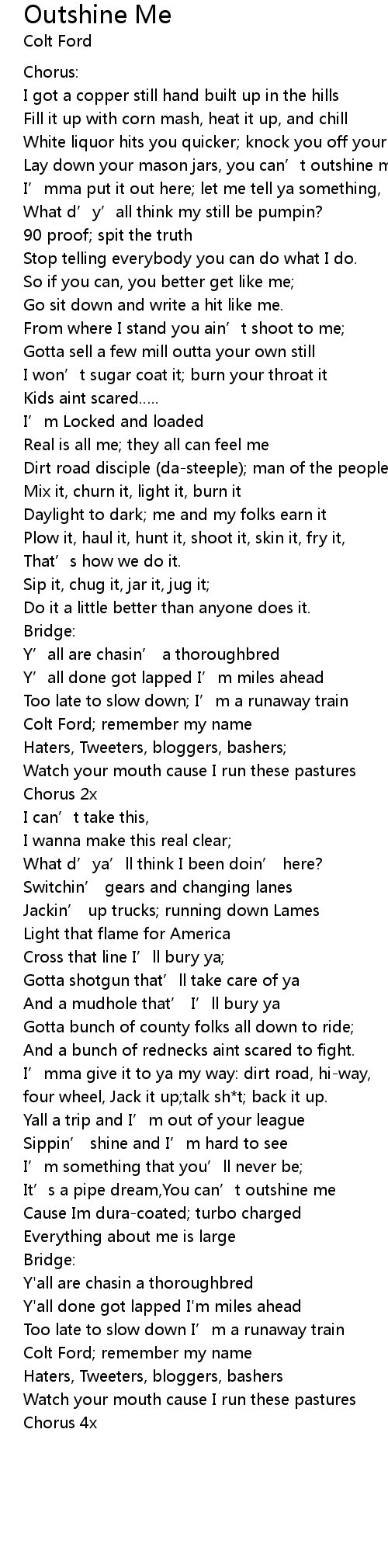| I’mma give it to ya my way: dirt road, hi-way, | |