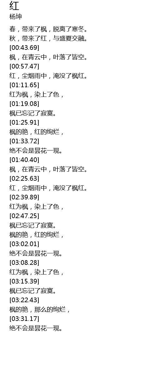 | [00:46.33] | 枫,在青云中,叶落了皆空。 |
