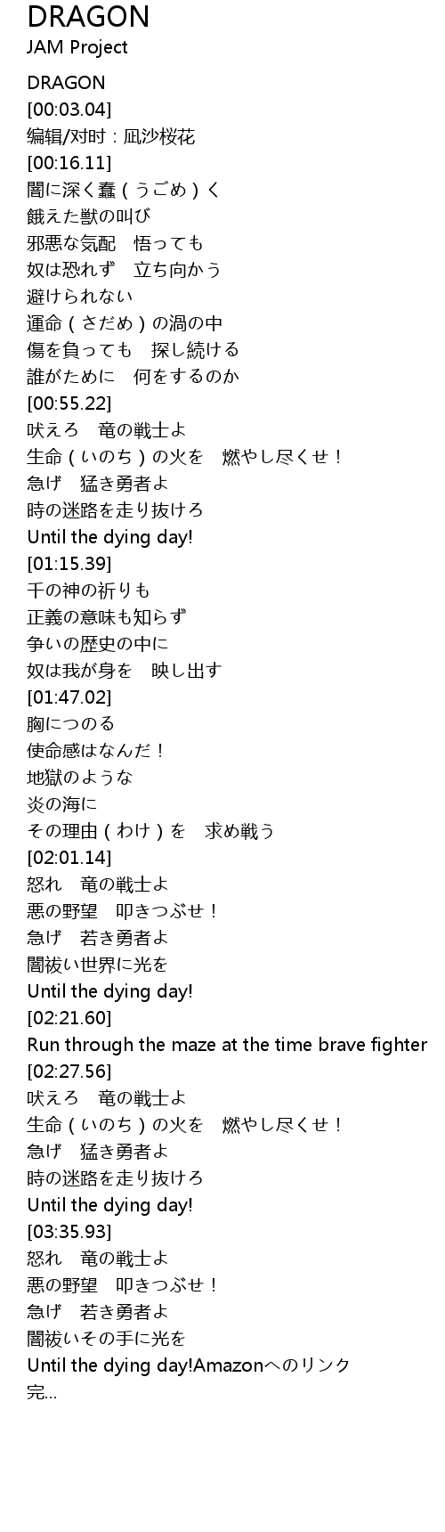 | [03:53.33] | Until the dying day!Amazonへのリンク |