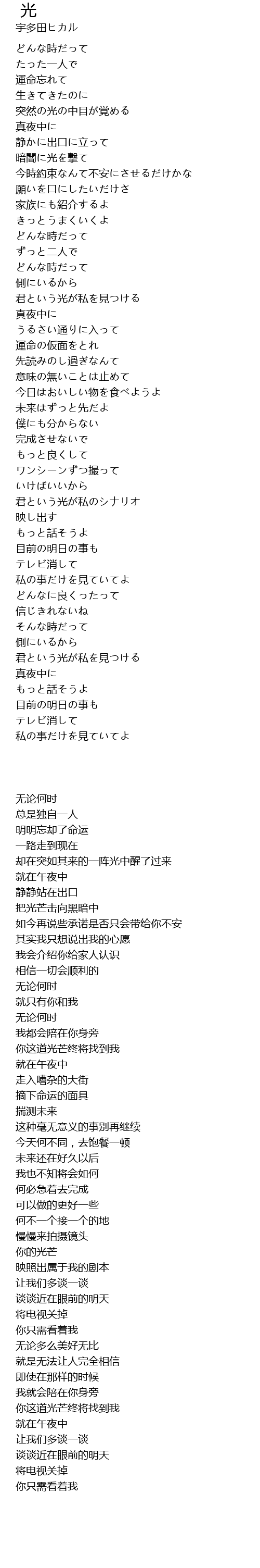 | 歌曲 | 光 |