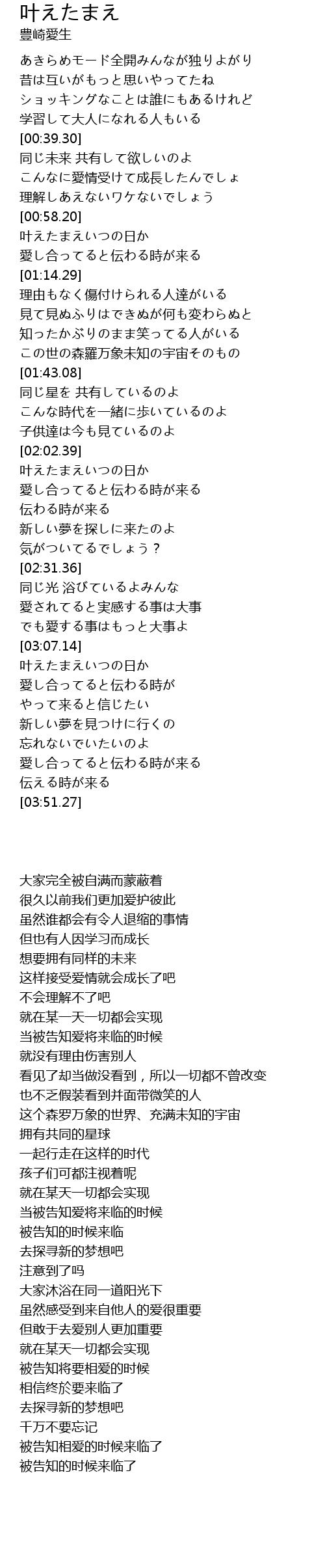 | [03:10.94] | 叶えたまえいつの日か |