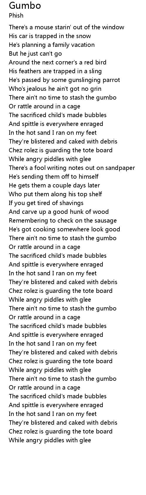 There ain't no time to stash the gumbo |