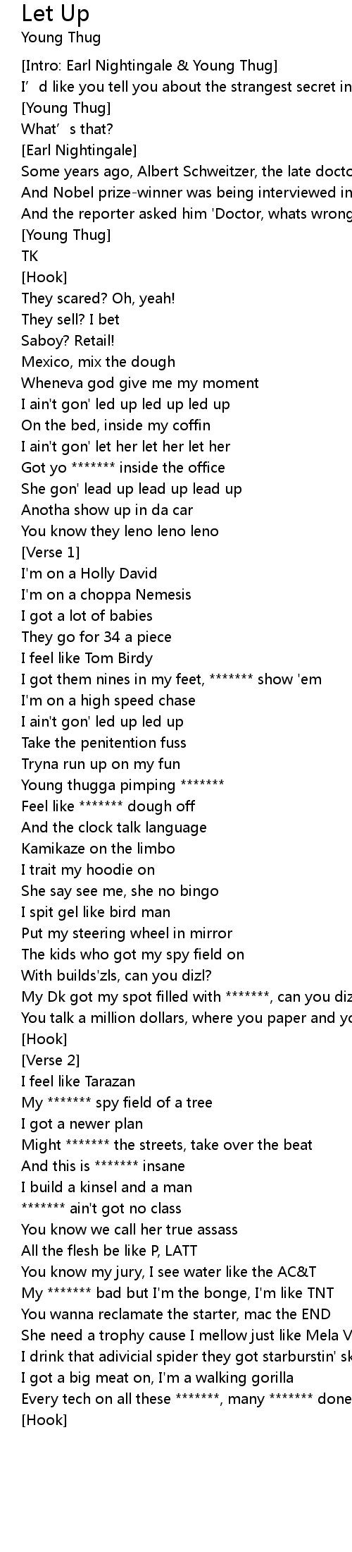 | I ain' t gon' led up led up | |