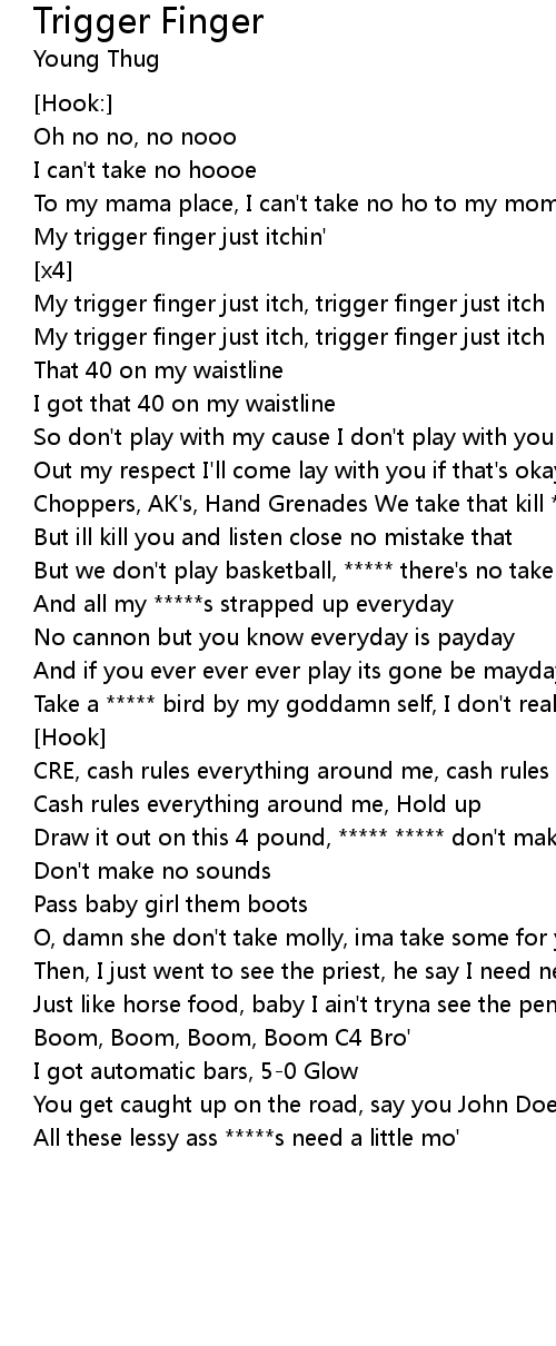 My trigger finger just itch, trigger finger just itch |