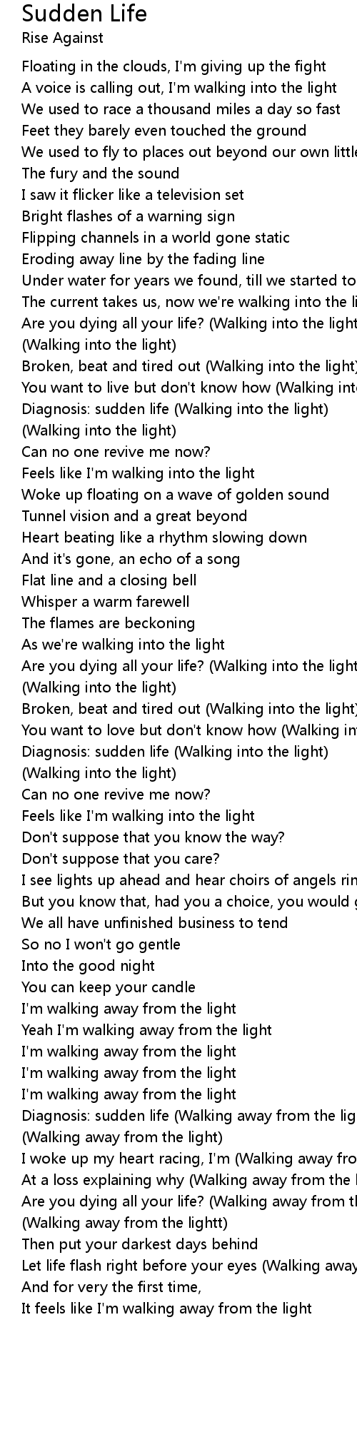 Diagnosis: sudden life (Walking away from the light) |