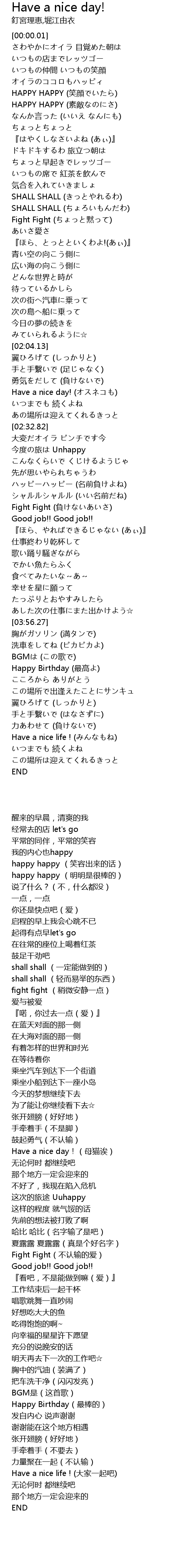 | [04:34.48] | Have a nice life ! (みんなもね) |