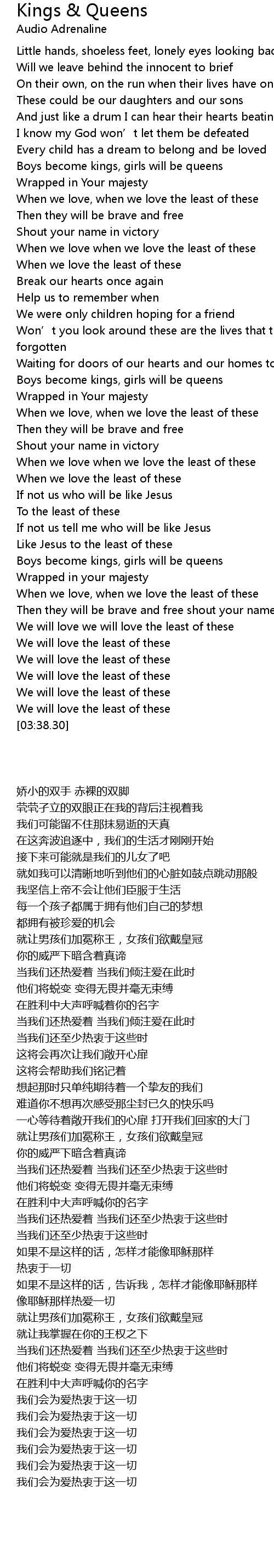| [03:20.35] | We will love the least of these |