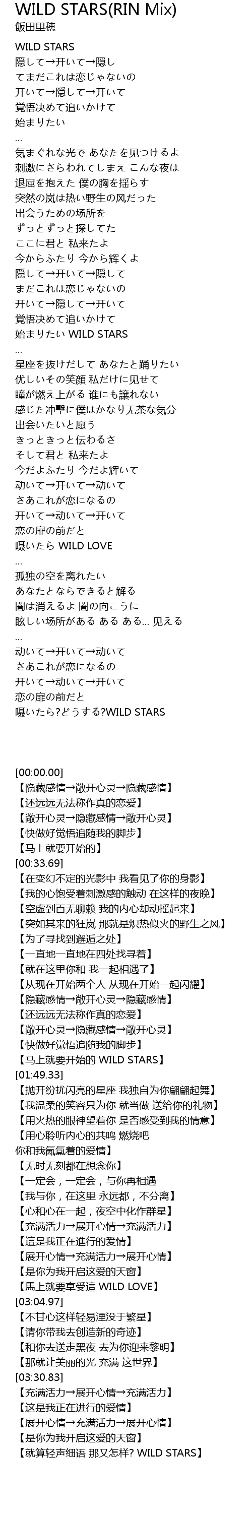 | [03:52.84] | 嗫いたら?どうする?WILD STARS |