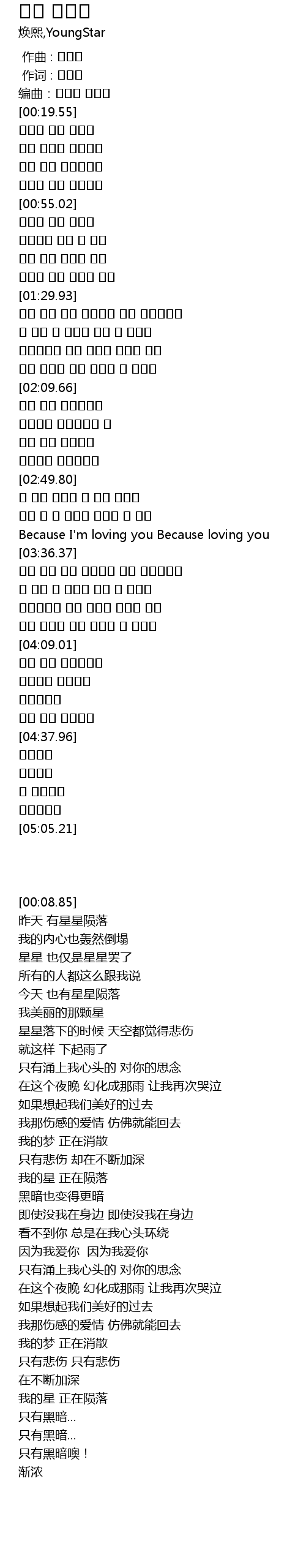 | [00:21.39] | 昨天 有星星陨落 |