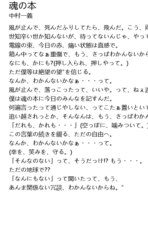 | 僕は魂の本に今日のみんなを記すんだ。 | |