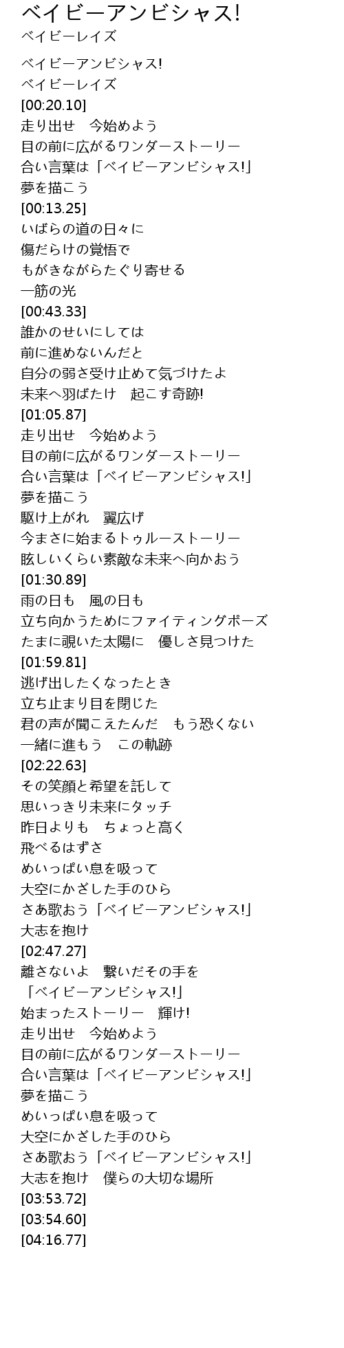 | [03:40.48] | さあ歌おう「ベイビーアンビシャス!」 |