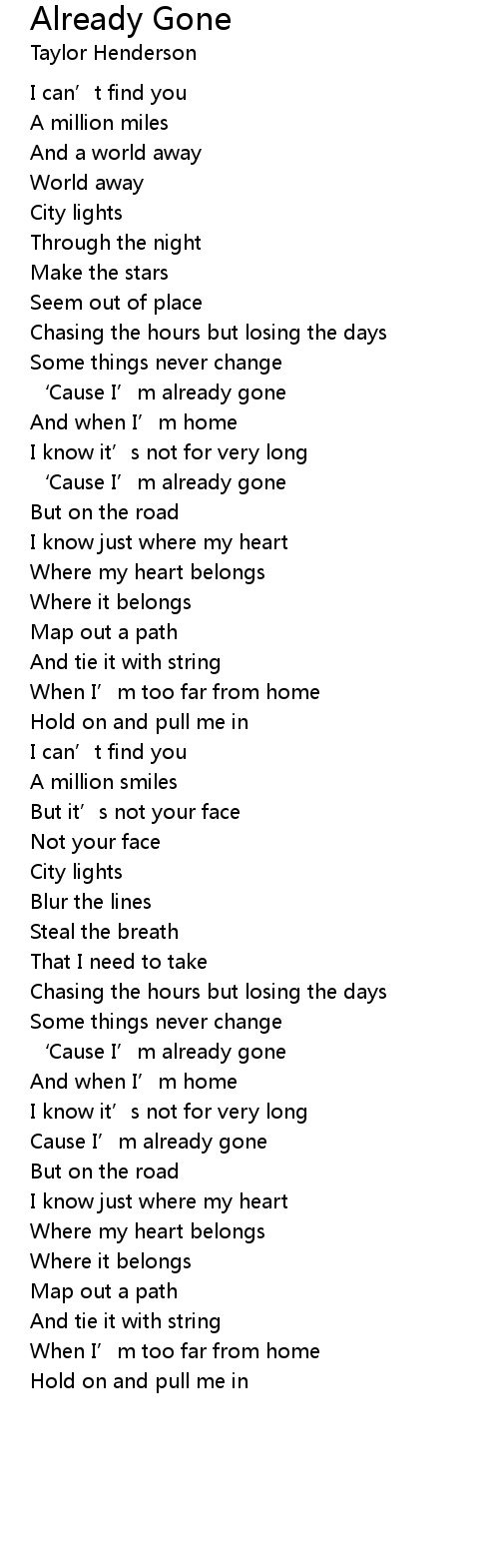 | Cause I’m already gone | |