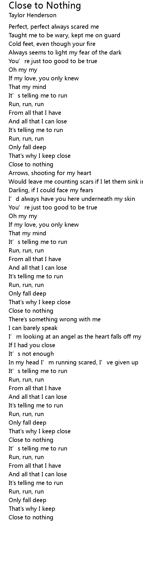 | I’m looking at an angel as the heart falls off my sleeve | |