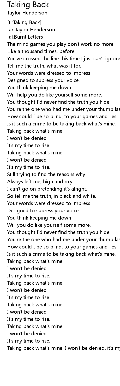 Taking back what's mine, I won't be denied, it's my time to rise. |
