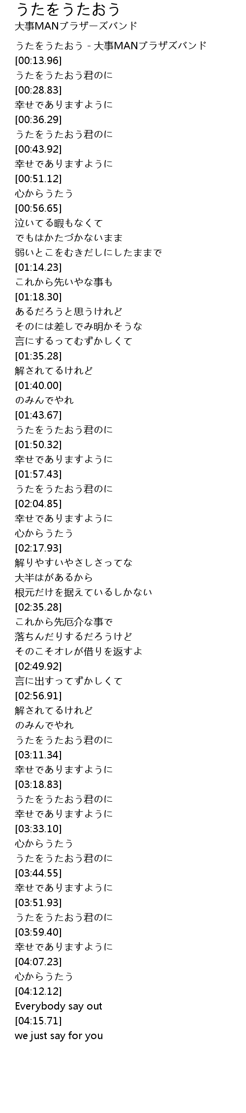 うたをうたおう - 大事MANブラザズバンド |