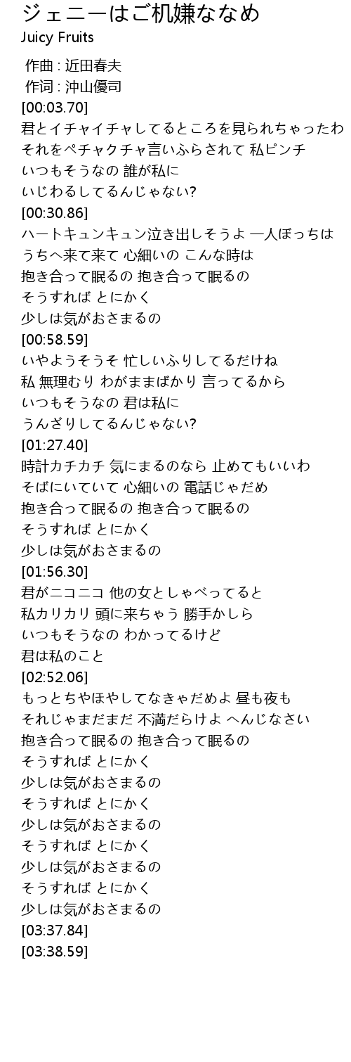 | [02:58.99] | それじゃまだまだ 不満だらけよ へんじなさい |