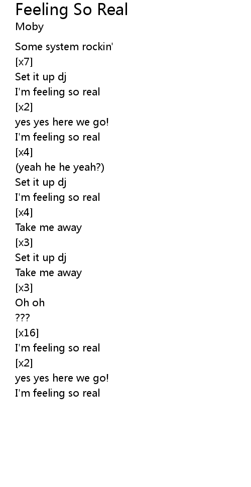| I'm feeling so real | |