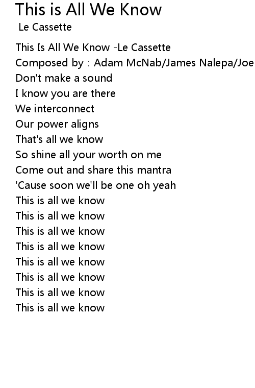 | [00:00.259] | This Is All We Know Le Cassette |